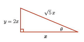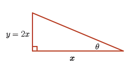 From the given triangle, we have \(\tan(\theta) = \dfrac{y}{x} =2\) and hence \(y = 2x\).
