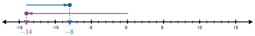 It makes sense that the arrow we use to represent a change of \(+6\) would be the same as the example we just did. So what needs to change here?