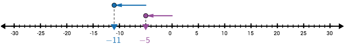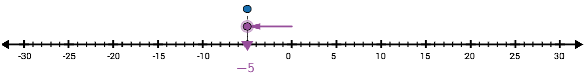 To show this addition, we would start the arrow at \(+1\), and move it \(5\) units down.
