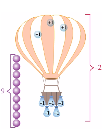Using our hot air balloon, we remember that it already represents \(-2\). To add \(9\) to \(-2\), means that we add \(9\) units of air to the balloon.