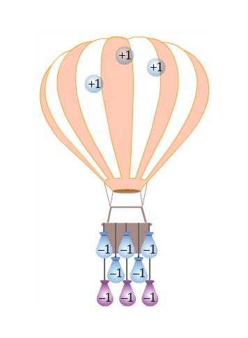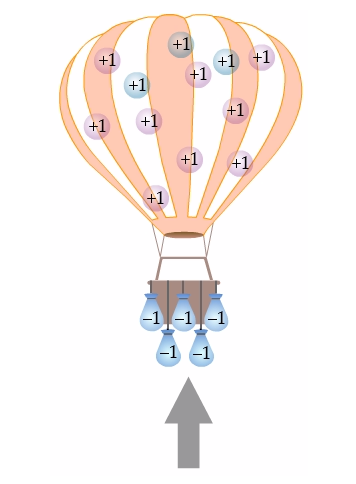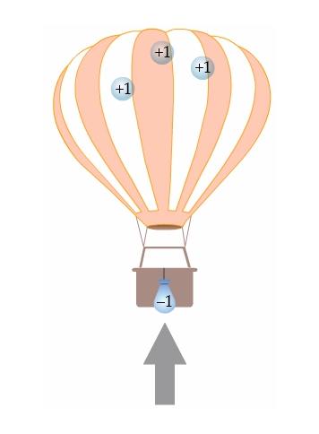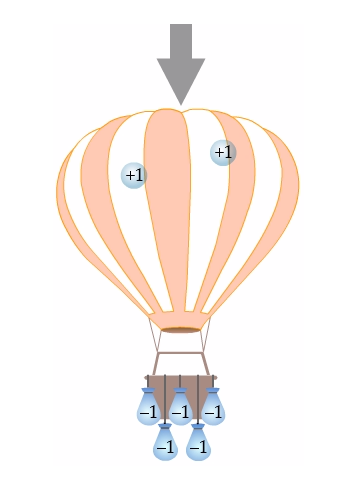 We remove \(1\) air particle from the balloon, causing it to fall. Convince yourself that removing units of air is going to cause the balloon to fall towards the ground.