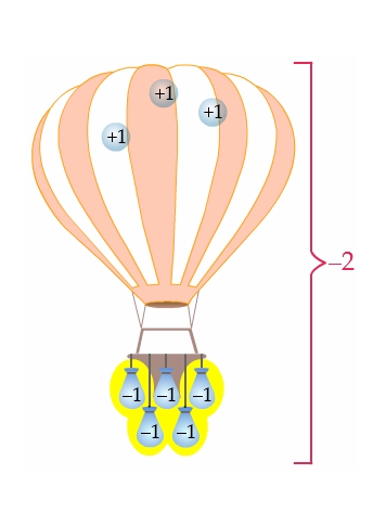 Overall, our hot air balloon represents \(-2\), because that is the total of \(+3\) and \(-5\). What this means is that we have \(2\) more sandbags than units of air.