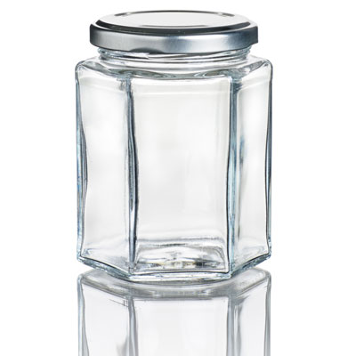 The space inside the glass jar has dimensions as marked on the diagram and a single jellybean has a volume of \(3.5\) cm\(^3\).
