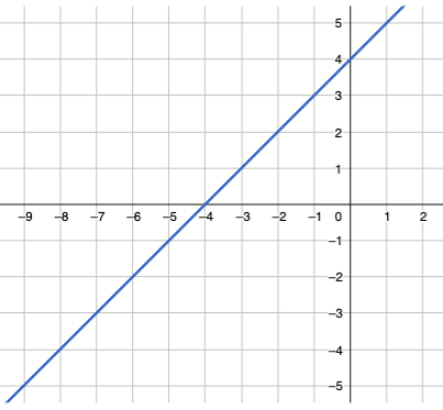 For this example, we can represent the linear relation with the equation \(y=\dfrac{5}{4}x+2\).