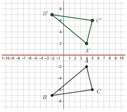 \(\triangle A'B'C'\) has vertices \(A'(4,2)\), \(B'(-2,7)\), and \(C'(5,6)\).