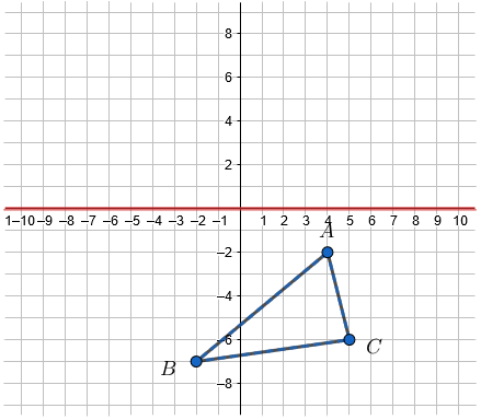\(\triangle ABC\) has vertices \(A(4,-2)\), \(B(-2,-7)\), and \(C(5,-6)\).