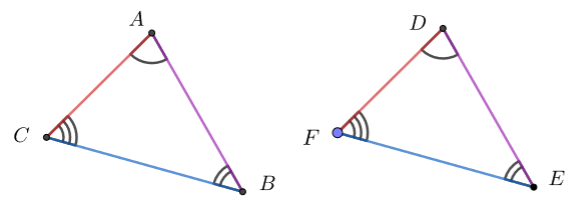 Given a pair of similar polygons, how are their perimeters related? To help answer this question, consider the similar triangles \(ABC\) and \(DEF\).