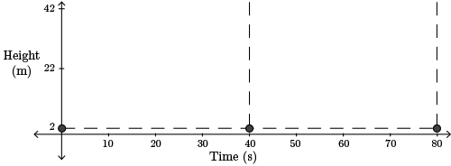 The rider gets on at the lowest point so a minimum occurs at \((0,2)\). Minimums also occur at \((40,2)\) and \((80,2)\) since each complete revolution takes \(40\) s.