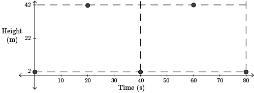 Therefore, the rider is \(22\) m above the ground at \(10\) s, \(30\) s, \(50\) s, and \(70\) s.