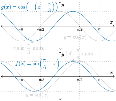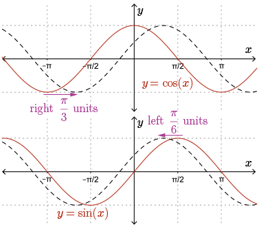 \[\sin(x) = \cos\left(\dfrac{\pi}{2} - x\right) \text{ and } \cos(x) = \sin\left(\dfrac{\pi}{2} - x\right)\]