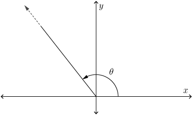 Now, \(\dfrac{\pi}{2} \leq \theta \leq \pi\), so \(\theta\) is an obtuse angle with a terminal arm in the second quadrant.