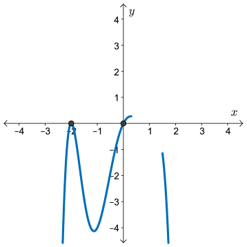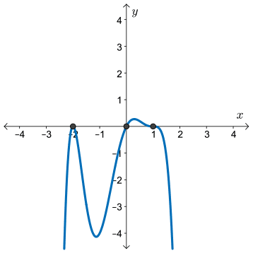 - There is a zero at \( x = -2 \) of multiplicity two. Therefore, \((x + 2)^2 \) is a factor of the function.