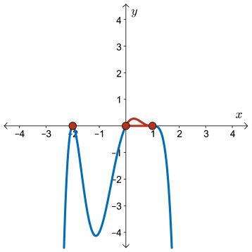 - An alternate approach is to graph the corresponding polynomial function, using the factored expression, and identify the intervals when the graph is above (positive) or below (negative) the \(x\)-axis.