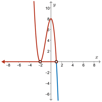 \[ x \lt -2 \enspace \text{or} \enspace -2 \lt x \lt 1 \]