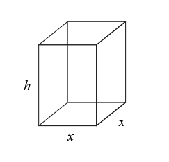 Let \(x\) represent the length of the side of the square base \((x \gt 0)\) and \(h\) represent the height of the rectangular prism \((h \gt 0)\).