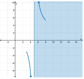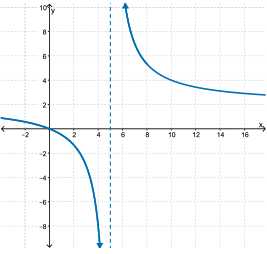 Similarly, when \(x \rightarrow 5^+, y \rightarrow \infty\). We can denote this by \(\displaystyle \lim_{x \rightarrow 5^+}f(x) = \infty \).