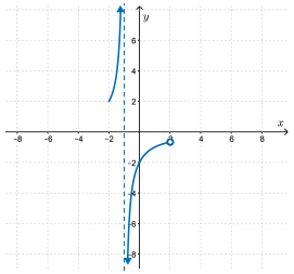 - The function has a vertical asymptote at \( x = a \) if \( h(a) = 0 \) and \( g(a) \neq 0 \), when the function is in simplest form.