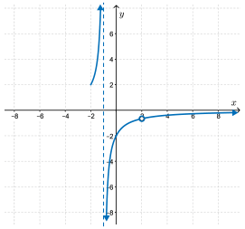 is a function that has a hole at \((4,-2)\) and a vertical asymptote at \(x=0\).